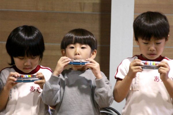 観劇後は年長さんからのハーモニカの演奏が贈られ、お部屋では