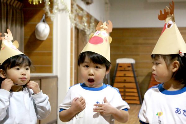 先生からは歌や演奏、劇のプレゼント、サンタさんからはお菓子のプレゼント
