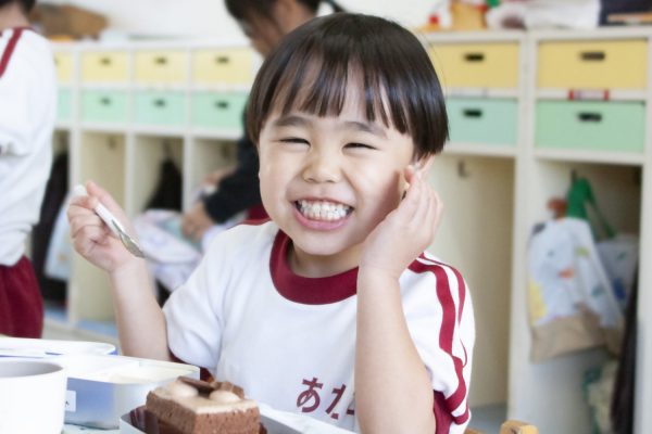 お部屋に戻ってからもゲームを楽しんでお昼を食べたら、お待ちかねのケーキ。