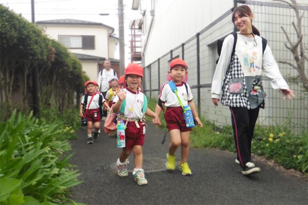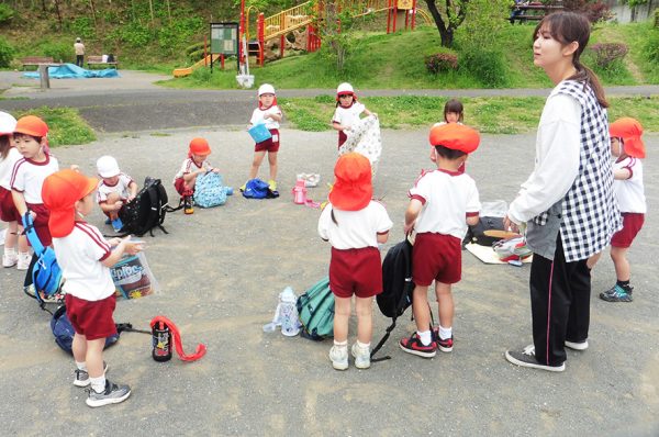 4/21(火)に年中さんが近くの公園へピクニックに行ってきました! 途中、雨が降るハプニングもありましたが、遊具やドロケイ、 春の草花や虫も見つけ、楽しみました。