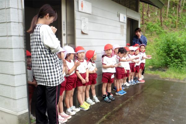 トイレの軒先で雨宿り。。。
